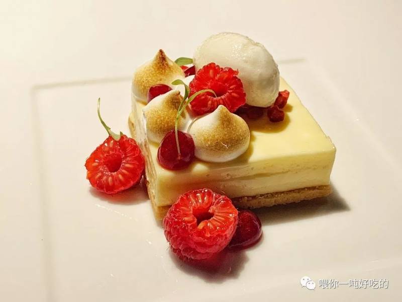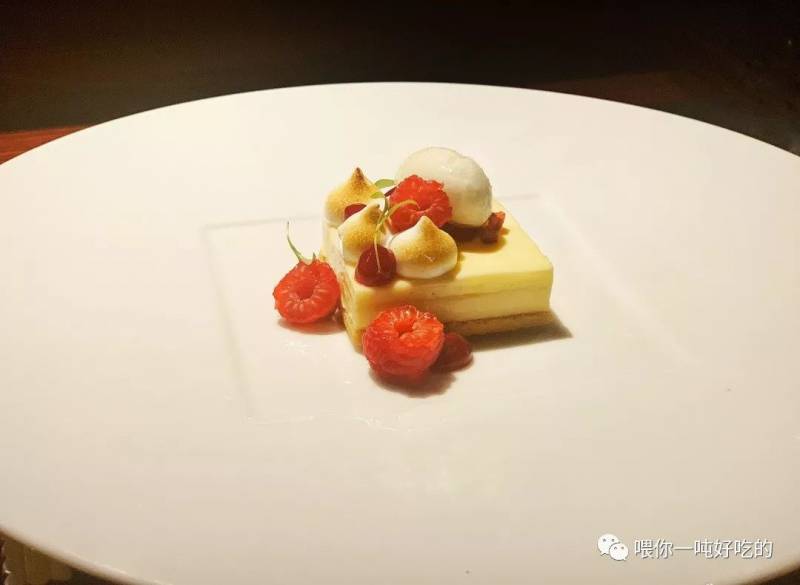 柠檬慕斯搭配柠檬冰激凌,外加几颗点缀的覆盆子,酸中带甜,甜中带酸,极富有层次的清爽感.