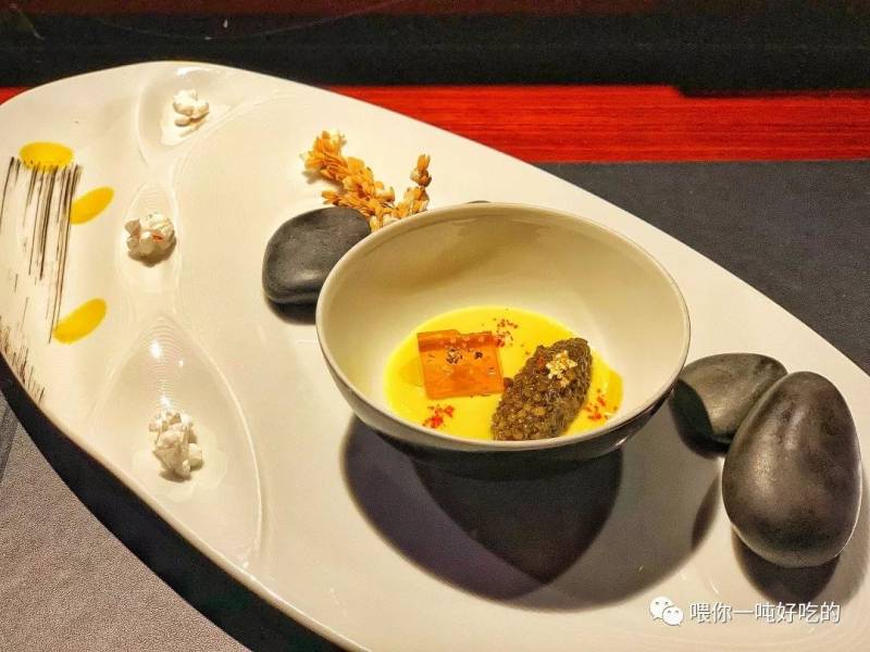 不妨单独尝尝玉米膏,会让人有种掉进玉米地的错觉。矩形透明的牛肉冻,晶莹剔透,层次分明。