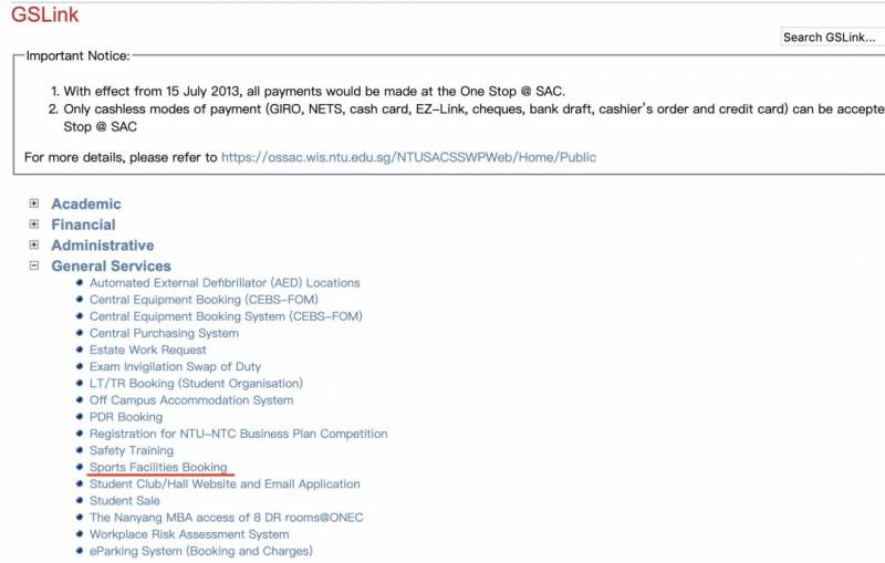 登陆GSLink——选择General Services——选择Sports Facilities Booking——选择Apply——预定想要的场地即可。