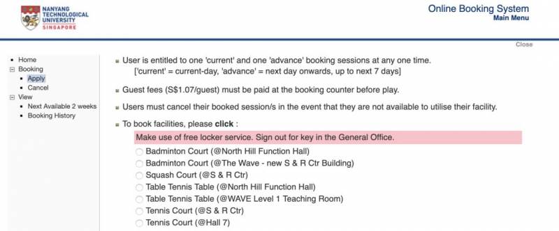 相信大家一定在校园里见到过许多运动场地,是不是很心痒的想和朋友来上几局?羽毛球场、壁球场、桌球桌及网球场都是可以预定的哟!