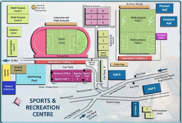 NTU最大、设施最齐全的健身房为North Hill Gym,位于北山宿舍群(60 Nanyang Crescent Level 3, Block 19A Binjai Hall),每天早7点-晚10点开放(除每周一早10点-午12点打扫外),热爱健身撸铁的小伙伴们快用学生账号注册后约起来吧!