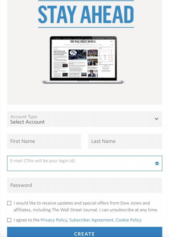 直接点击Wall Street Journal(WSJ)就可跳转至注册连结,填写信息后即可浏览啦: