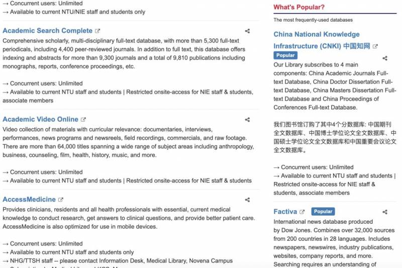 NTU不单单有免费图书馆线上资源、数据库资源,更有做科研必须的免费文献下载,就连知网也可以哦!