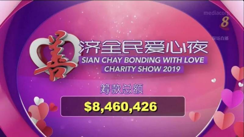 《善济全民爱心夜》本次电视筹款晚会募集善款的目标是500万元,以用于支持每年运营开支700万以及增补建国一代医疗基金。最后的筹款总额竟然达到S$8,460,426,超出目标300多万。