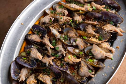 经过大蒜与酱油的烹饪的活大头(价钱随着季节不同),吃起来更加清新又美味,再配上冰镇啤酒,绝对让你一吃再吃,停不了手! 。