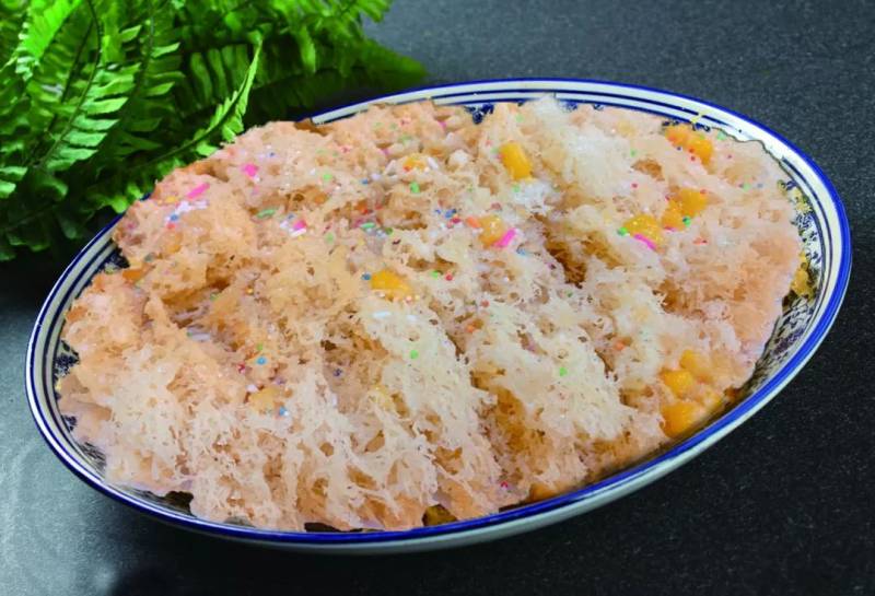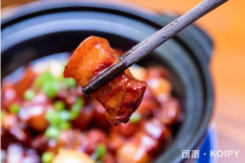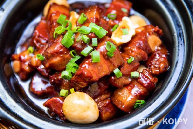 酥香爽口,色深而不咸,配有鹌鹑蛋