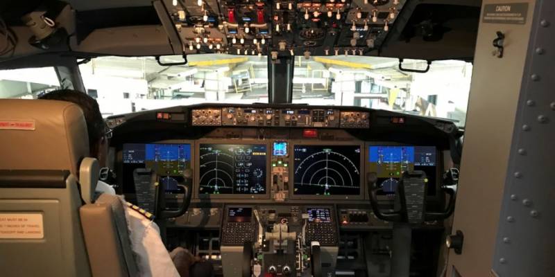 2018年6月28日,在印度孟买国际机场拍摄的捷特航空公司波音737 MAX 8飞机的驾驶舱入座仪式。(路透图片)
