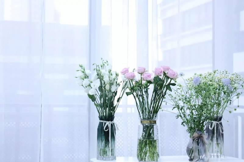 白,最初开始的空;粉,是心上最温柔的奶油;蓝,一点点的天空;还有绿叶的衬托,怎么插都不会丑。