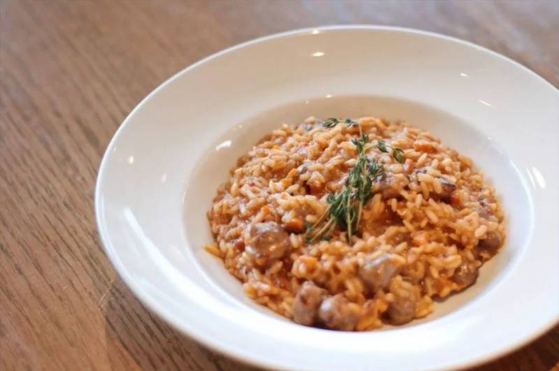 Risotto Ai Funghi Porcini,米饭在白葡萄酒汤中炖煮,嚼著的每一口都是软糯,完全不会夹生。而且蘑菇很大块,可以清楚的看到而且吃到它们。