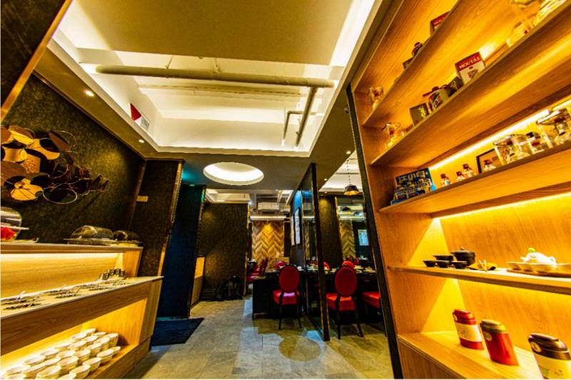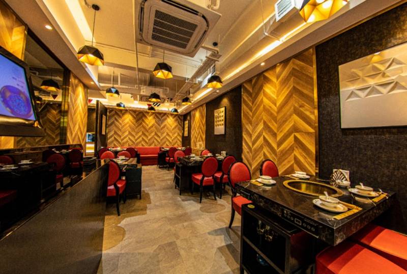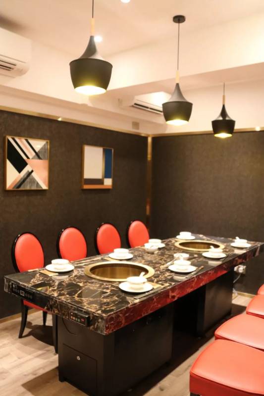 一入店就是高级色之间的大碰撞,黑色和橙色与镂空的几何图形相结合,只能用高级、雅致来形容。
