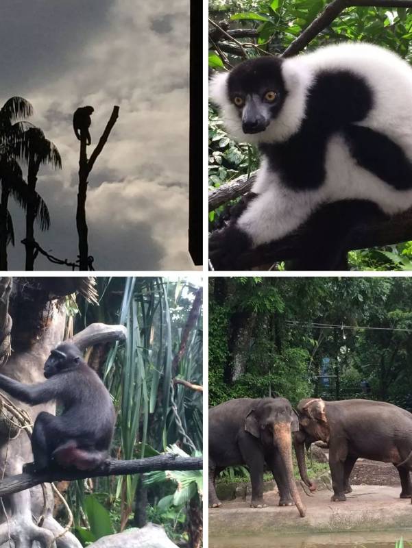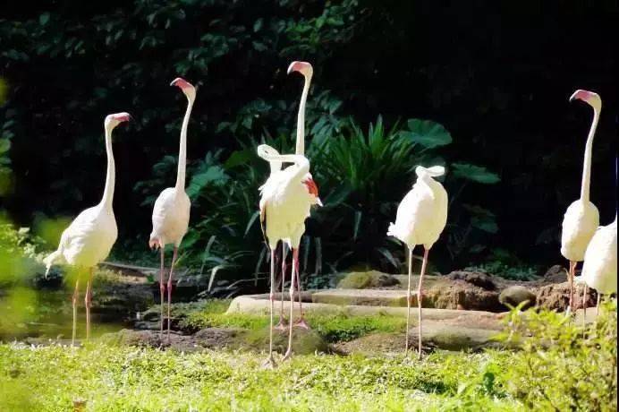 我们乘坐迷你蒸汽火车畅游“原始王国”及整座动物园,“王国”内展出的世界各地的不少品种属于珍禽异兽,如东南亚的马来貘、长鼻猴、水獭、鹦鹉、小黑猴、黑豹、白老虎,东非的狮子、犀牛、河马、鲤鱼、羚羊。