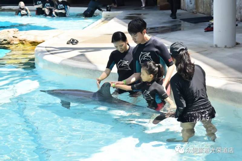 提前预约了海豚园,让孩子与海豚有个亲密接触。