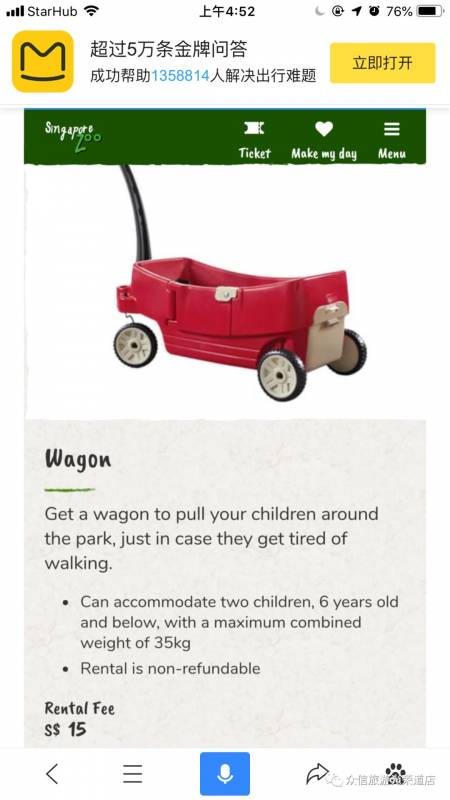 带小朋友来玩的推荐入园后租一个"wagon"中文 “歪跟”当然你的孩子要小于6岁或者35公斤以内。15新币大约75人民币无时间限制。