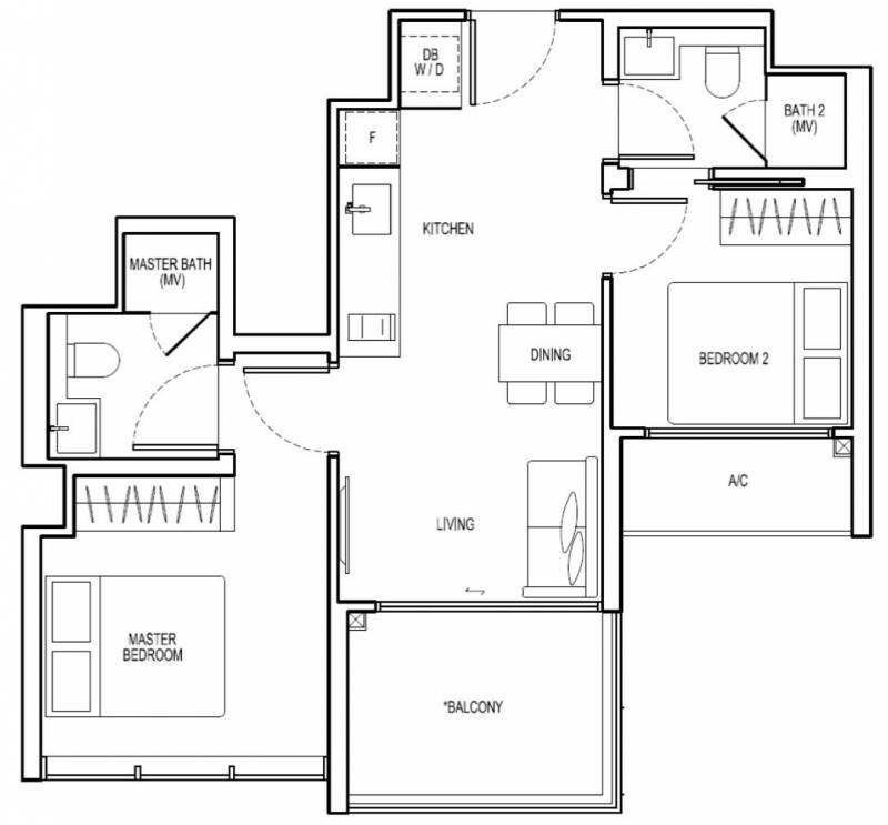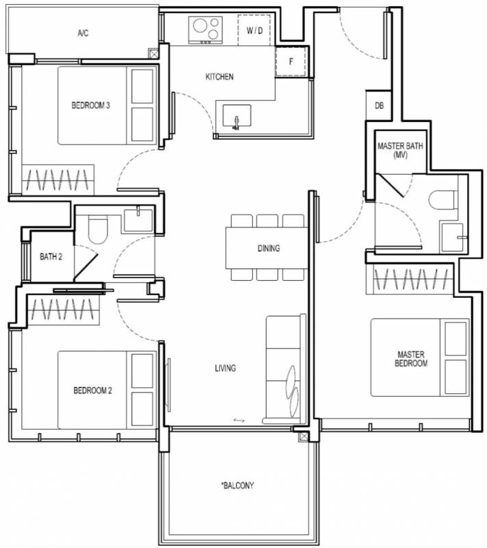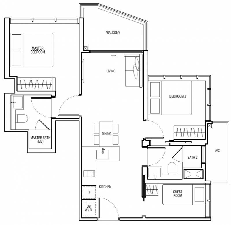 二卧室,套内面积48-56平方米(517-603平方尺),整套售价从新币88万元起。特点是户型方方正正,布局合理,无浪费空间,客厅配备阳台。两个卧室均配备衣柜,均可放置双人床。这样的户型非常适合夫妻情侣享受二人世界,也很适合有个小孩的夫妻,以及专业人士和学生。除了自住,也适合出租给高端专业人士。