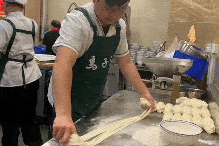 兰州牛肉面的面条更是关键,想拉出不一样粗细的面条,不仅需要强大的臂力,还要控制好力度哦,刚中带柔。