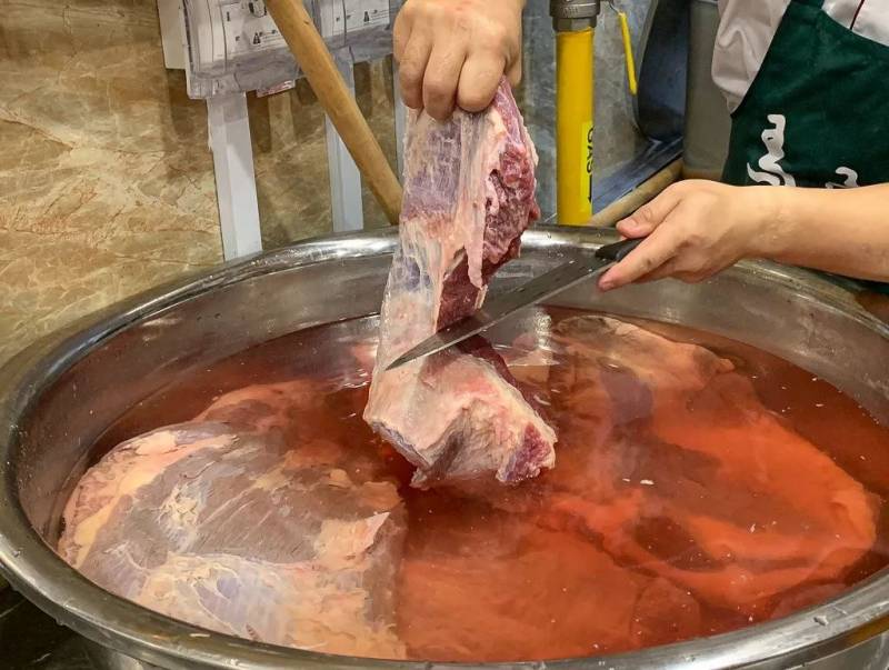 马子禄牛肉面的牛肉汤都是在每天的早晨开始准备和熬制,用了新鲜上等的牛肉和牛骨,加上八角、大料、香叶、草果等等30多种调味料来熬制而成,熬煮最少五个小时,所有材料的精髓都融入了汤里。