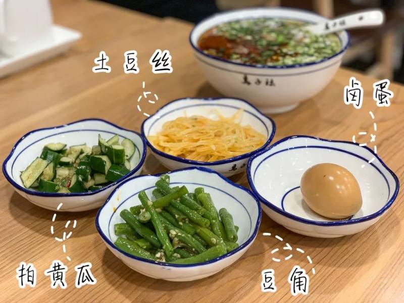 店里面目前有四款小菜(土豆丝、豆角、黄瓜和木耳)和卤蛋,在之后有更多小菜陆续到来哦!点了一碗面之后还可以加$4新币升级为套餐(卤蛋、小菜一份和饮料)。