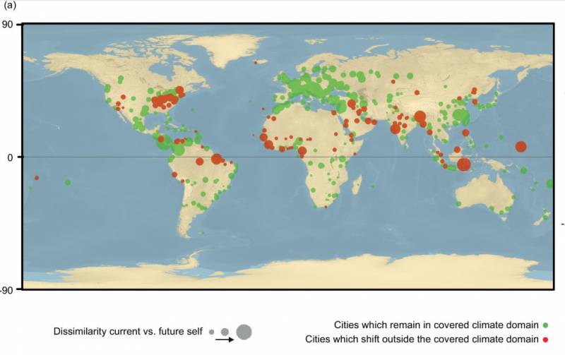 更令人感到恐惧的是,这次科研人员采用的是一套相对乐观的模型:即使到2050年世界二氧化碳排放量也维持在稳定水平,全世界77%的城市也会在冬季变得更暖和,在夏季变得更炎热干燥。