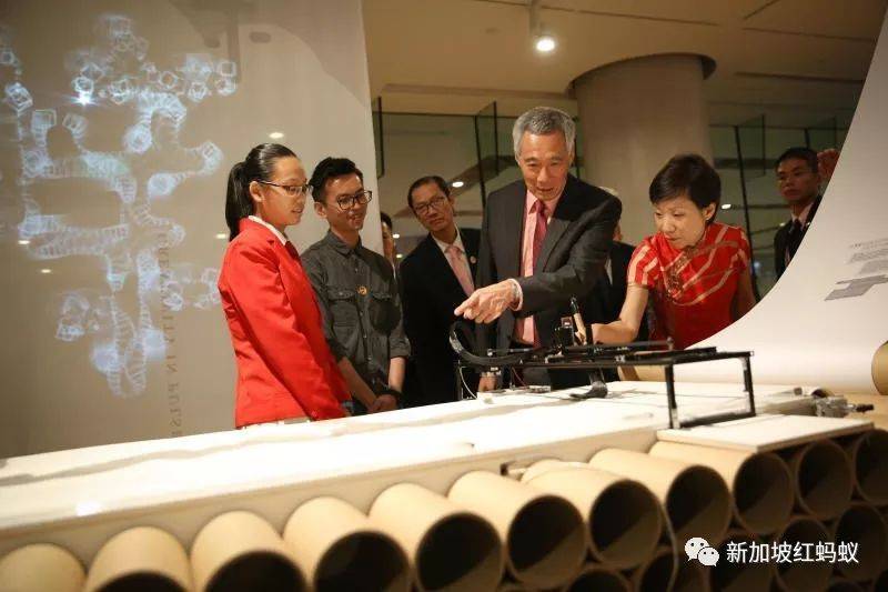 李显龙总理为新加坡华族文化中心主持开幕仪式,并在文化、社区及青年部长傅海燕的陪同下,参观王建斌的装置艺术作品《川流不息》。(海峡时报)