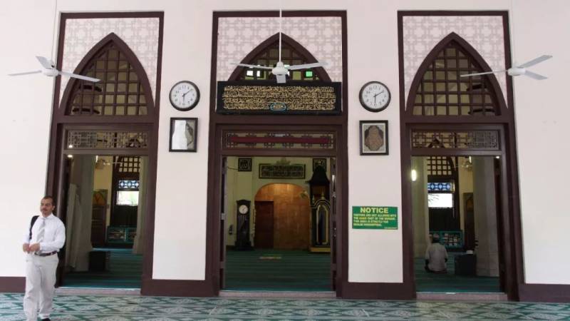 正门具有南印度的印度伊斯兰建筑风格,祷告殿的新古典主义特色包括多立克式立柱,以及具有华族绿色釉面砖的大窗。