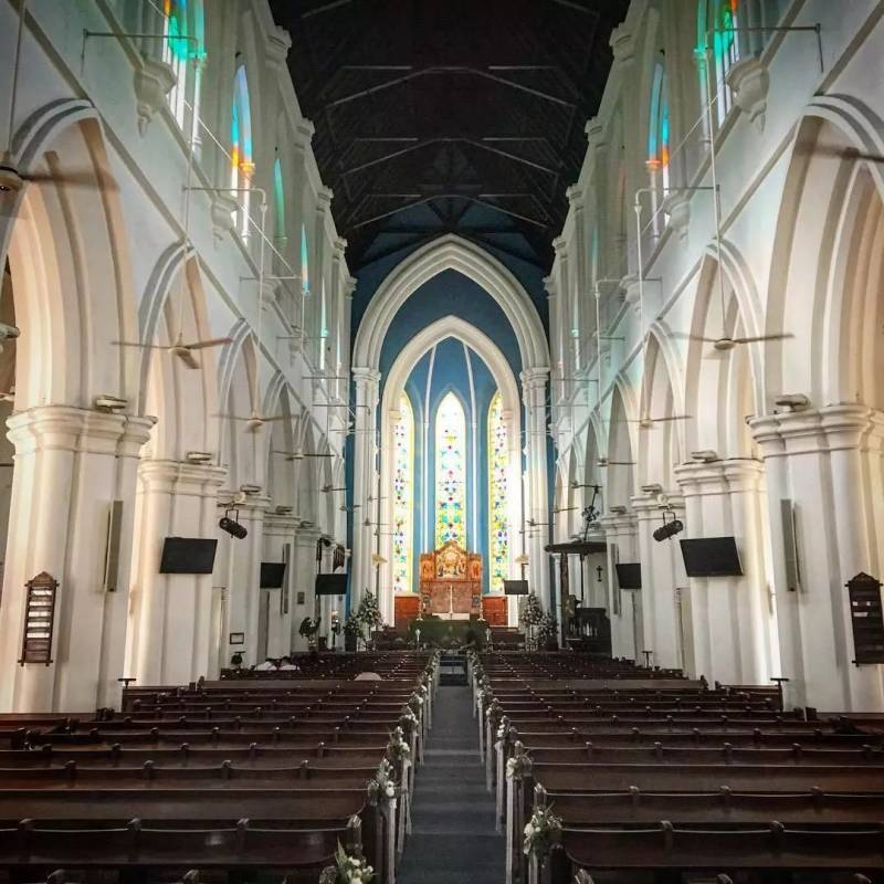 高高塔楼和尖顶直插蓝天,它是新加坡最大的教堂,也是最古老的英国圣公会礼拜堂。