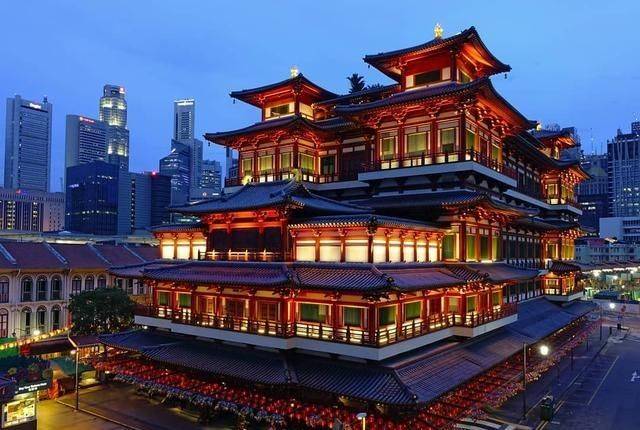 佛牙寺位于牛车水中心地区,寺中供奉了佛教徒的圣物:佛牙舍利,置于由信徒捐资打造的重达320 千克的金制舍利塔之中。