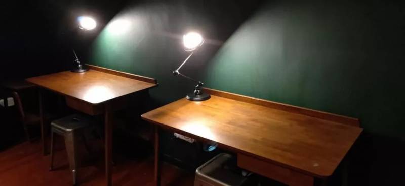 昏暗的灯光、厚重的书桌