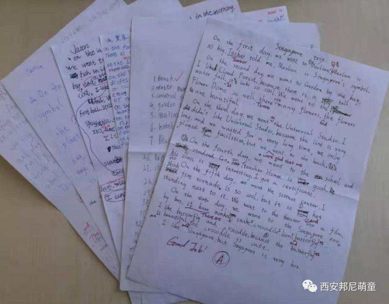 新加坡研学之旅临近尾声啦,终于要回到爸爸妈妈的怀抱了,在独自旅行的7个日夜里,小朋友们不止看到了外面世界的精彩,也学会了如何和外国朋友接触交流,更加了解学习英语的重要性!不停在原地,努力去追寻,无论在哪里,都要留下足迹,相信在以后的生活中,小朋友们会更加团结,英语会更加出色!当然小兔们的作业也是不能落下的哦!邦尼萌童学院也会和小兔子们一起成长,在不断发展的旅程中继续探索,勇往直前!研学和学习是密不可分的,除了读万卷书,行万里路,把我们生活中的点点滴滴记录下来也是必不可少的,在Derek老师的指导下,小朋友写了英文作文,稚嫩的文字确有着大大的梦想,两个字:优秀!