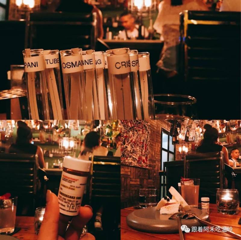 所以点了一set的甜点,主厨以天马行空的分子料理闻名,中间的药瓶里装着小糖果,算是个有趣的体验。