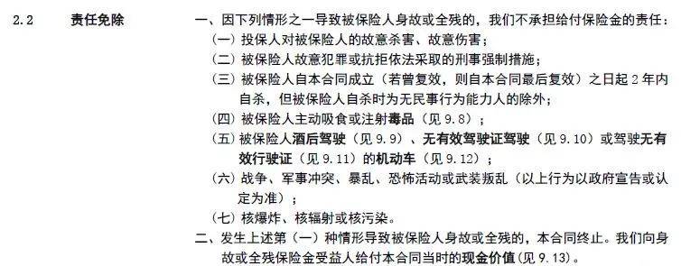 弘康大白的除外条款,与同方挚爱、精心优选的类似