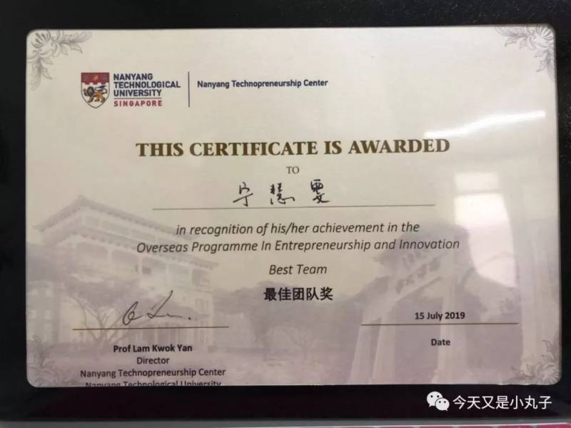 “ 短短的两周承载着和浙理和广外小伙伴们满满的回忆,在圣淘沙沙滩上烈日下的第一次相识与合作,在三巴旺的高空大喊“我可以相信你吗”,在福康宁公园围观小蜥蜴,在牛车水美食广场排几十人长的队伍只为了一份网红天天海南鸡饭,拖着萱萱去吃了偕源推荐的suki-ya小火锅,迫不及待去一睹风光的“小笼包”,免费乘坐的环校公交红蓝线做了好几次才搞清站点,五天风趣幽默的创业课程,两次小比赛获奖得到了小礼品,团队成员两天拚命的头脑风暴讨论商业计划,汇报前的惴惴不安和汇报时的莫名自信,拿到毕业证书时的喜悦,隔海相望的马来西亚边界,新加坡清新的空气绿油油的草地鞋子竟然一点没脏,最后一次走走校园里的起起伏伏的小山坡……”