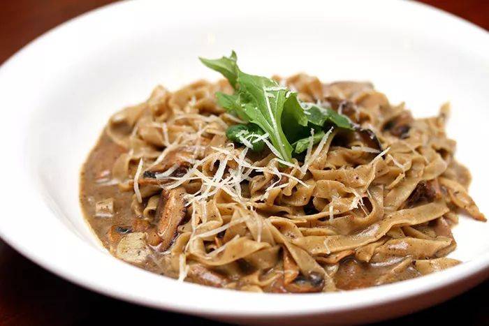 他们自制的蘑菇配松露意大利面