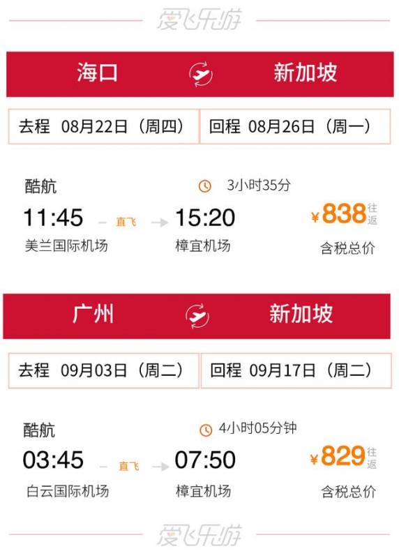 从我国到新加坡有非常多直飞航线,比如广州、海口、南宁、三亚、武汉、沈阳、深圳、天津……等城市皆已开通,而且价格实惠,低至900元往返!