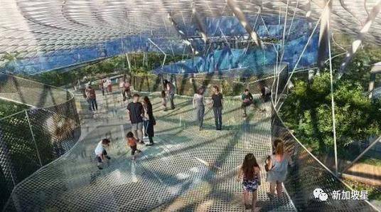 天空之网将一条250米长的弹跳网道和一条50米长步行网道融为一体。小朋友可以在弹跳网上嬉戏。大人则在步行在网道俯瞰整个“星耀樟宜”内部。