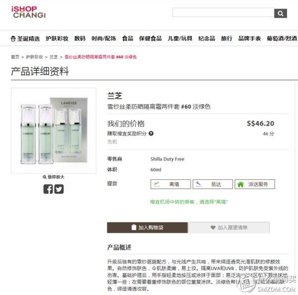 另一个例子是用了多年从未更换的兰芝绿色隔离霜两瓶装,新币46.2元,折合人民币113元每瓶。中国官方售价245元,买两瓶还能有找零。