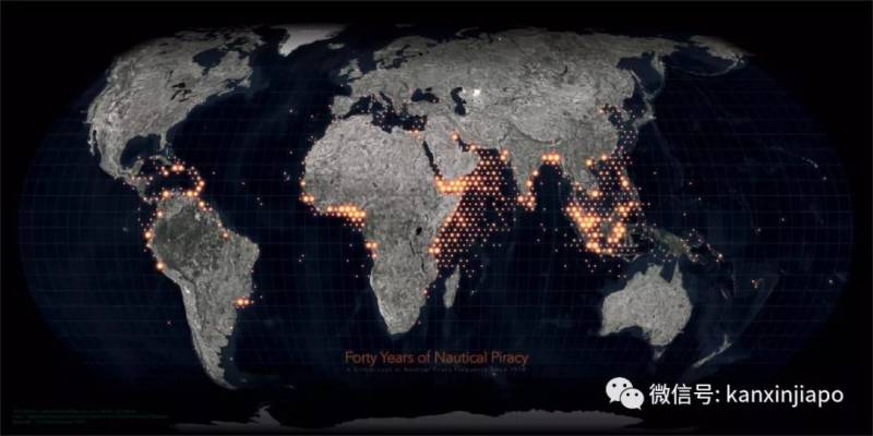 亮点区域为过去40年间的海盗活动活跃区,图源:VisualCapitalist