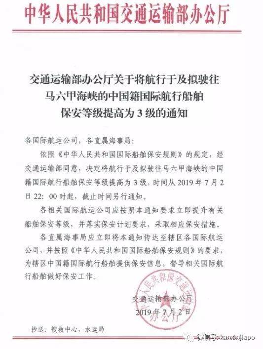时间回溯到本月初,当时,网络上流传着一封中国交通运输部将马六甲海峡中国籍国际航行船舶保安等级提高为3级的通知。