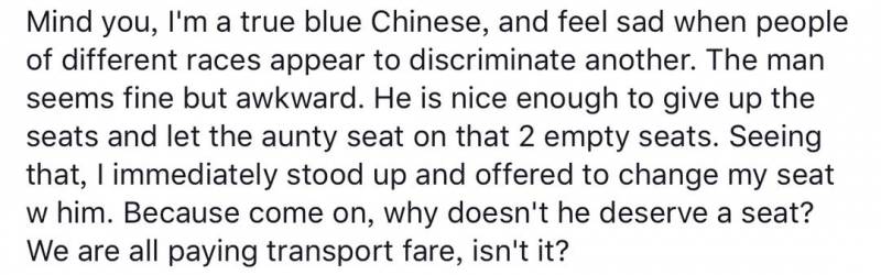 (我们新加坡人真的应该仁慈点,并奉行我们的誓言:无论语言、种族、宗教(人人平等))