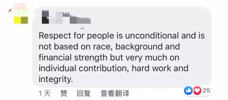 (对人的尊重是无条件的,不是基于种族、背景和财力,而是看个人贡献、辛勤工作的情况和诚信度)