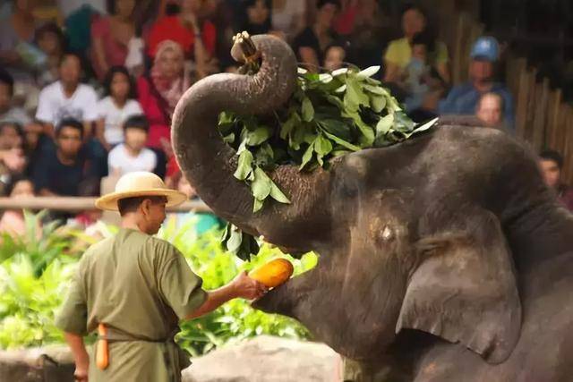 表演结束后,还有喂食环节,幸运的话可以和大象近距离互动!
