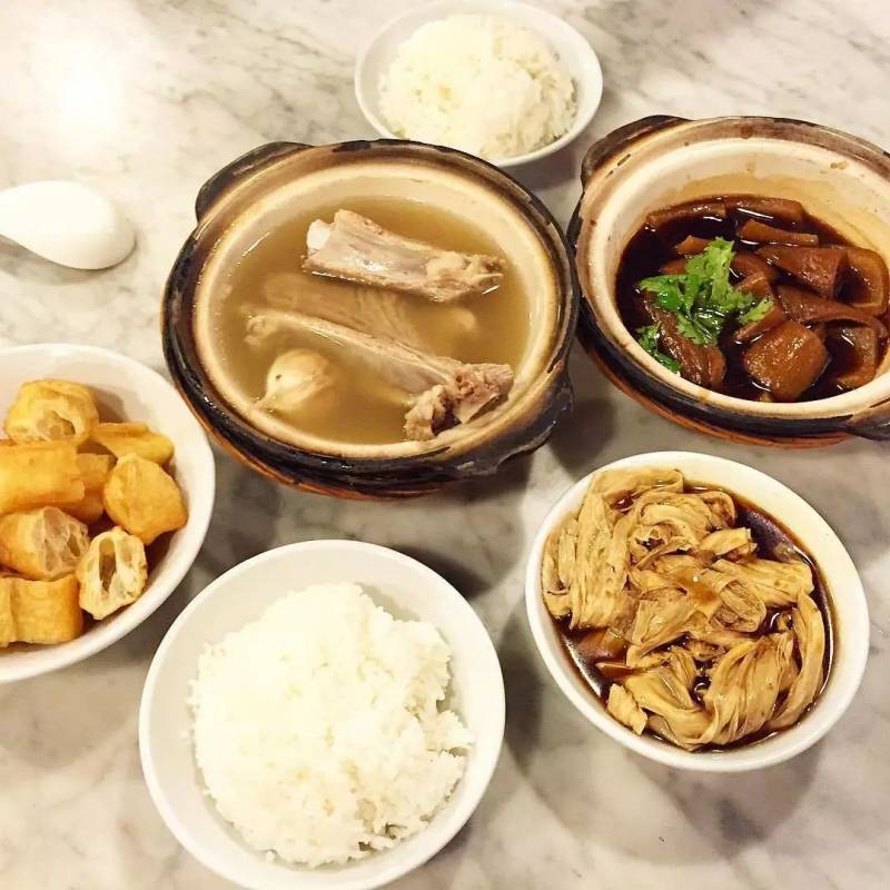 肉骨茶算是这里的招牌菜,一碗里有三根肉骨,被炖的酥烂,不论是配米饭还是配油条都很好吃。肉骨茶的汤底很鲜美但是和松发比起来中药味偏重,可能会有食客吃不惯。这里人均不贵,大概10新币左右就可以吃饱。