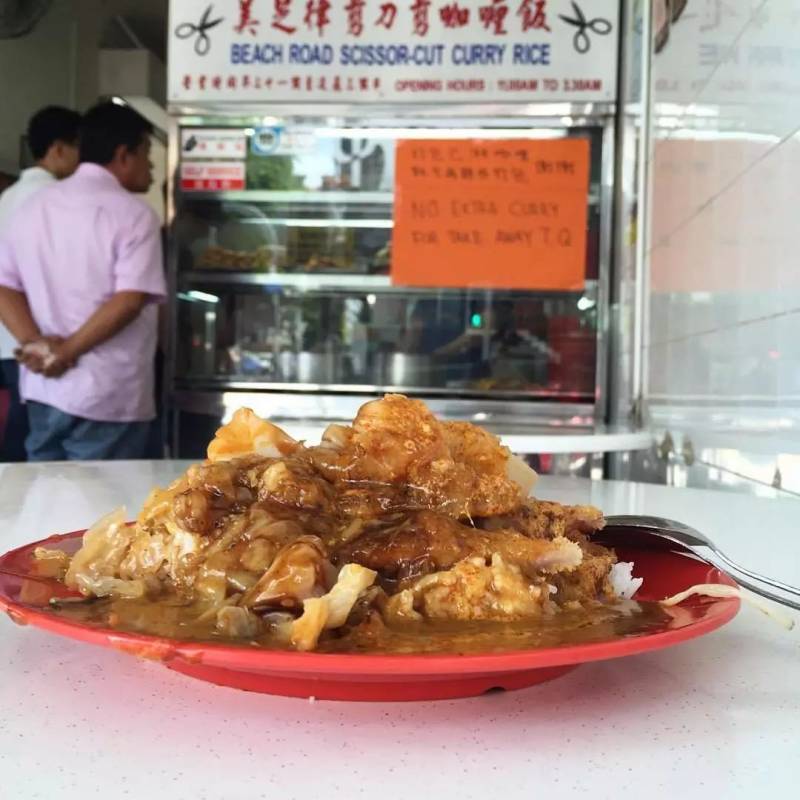 这里的特色就是剪刀咖喱饭,一份饭,一勺咖喱汁,通过玻璃柜看到喜欢的配菜,然后把想吃的配菜告诉店员就行,重点来了:店员会拿剪刀把各种配菜剪剪剪。所谓的剪刀咖喱饭就是店员会用剪刀把所有的菜品都剪一遍。