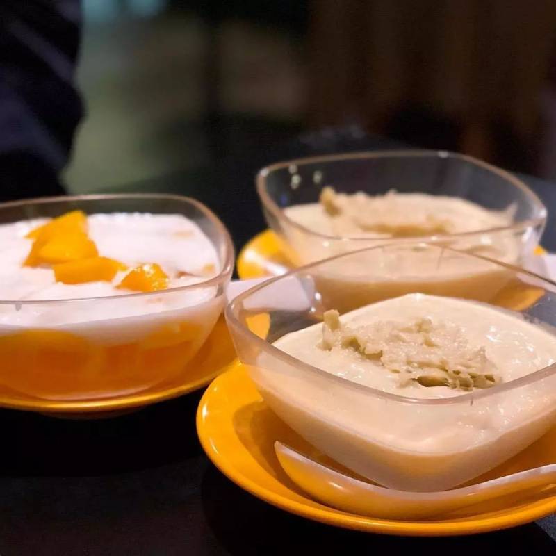 甜品种类有很多,最受欢迎的关于榴梿味的甜品。榴梿很新鲜,很多人都会选择点榴梿慕斯,类似于冰沙奶昔,但是上面有两块很大的榴梿,口感很顺滑。