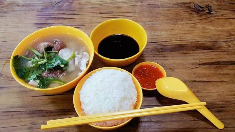 那一碗猪什汤,汇集了一头猪的所有精华,猪肚、猪肉丸、五花肉和灵魂猪油渣,所有的下水都处理的干干净净毫无异味。胡椒味不重,喝的出汤头鲜美,一尝就知道是经过时间和耐心的熬煮。