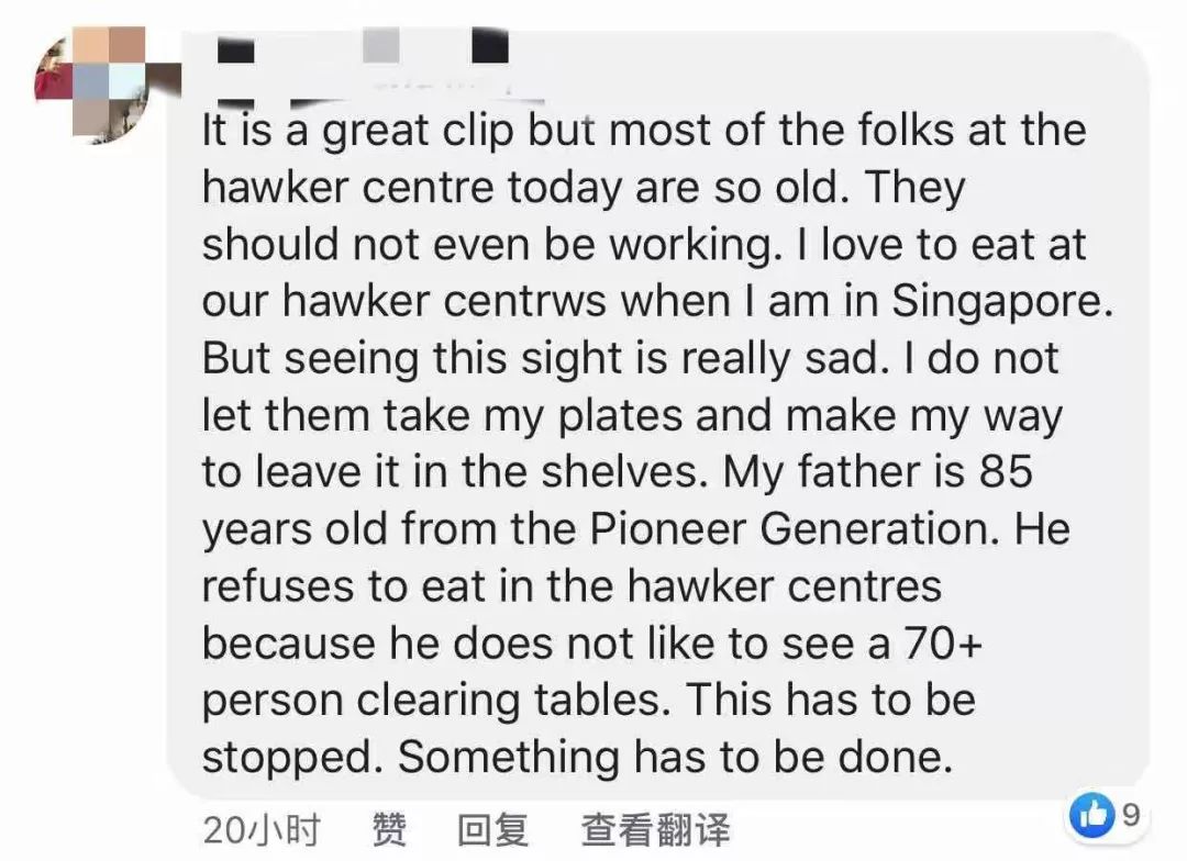 这是一个很棒的剪辑,现在小贩中心里很多清洁工都是老人,我很喜欢去小贩中心吃东西,但是看到这一幕很伤心,我爸爸85岁了,他拒绝去小贩中心吃东西,因为他看到一个70多岁的老人在清理桌子!