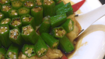秋葵脆爽鲜嫩,土豆泥绵软细腻,舀一勺