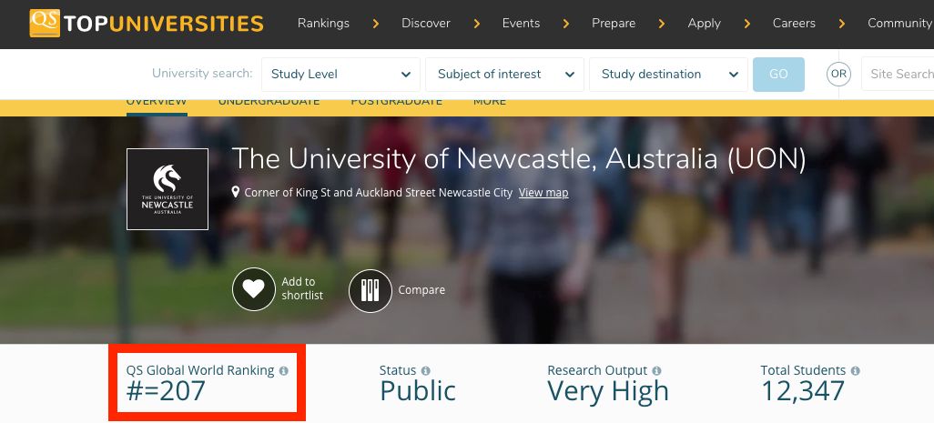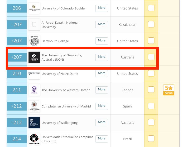 QS2020最新排名,纽卡斯尔大学位居207
