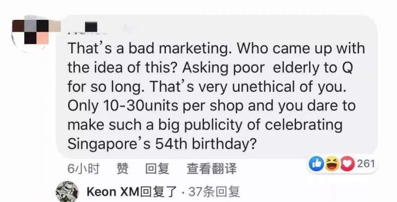 这是一个很差劲的营销,谁想出来的?让老人家去排那么久的队,这是非常不道德的,每家店只有10-30台,你敢做这么大的宣传,庆祝新加坡54周年国庆?