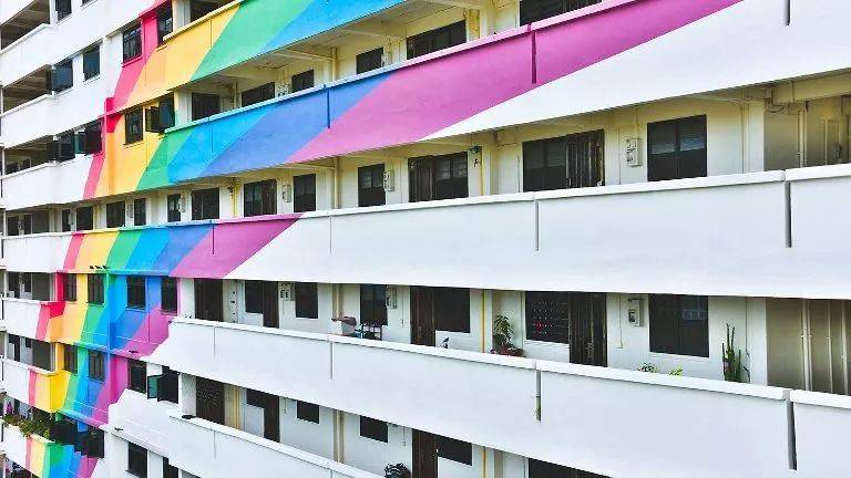 在这里,你无需等至雨后才能见到,彩虹贴心的设计者,用一道巨大的彩虹外墙凸显特色。而基于勿洛蓄水池路上的友诺士彩虹楼,在重新粉刷后已把彩虹遮盖,后港7道第316座组屋可能是唯一同时拥有红、橙、黄、绿、青、蓝、紫的彩虹色组屋了。