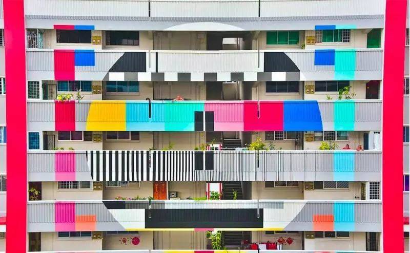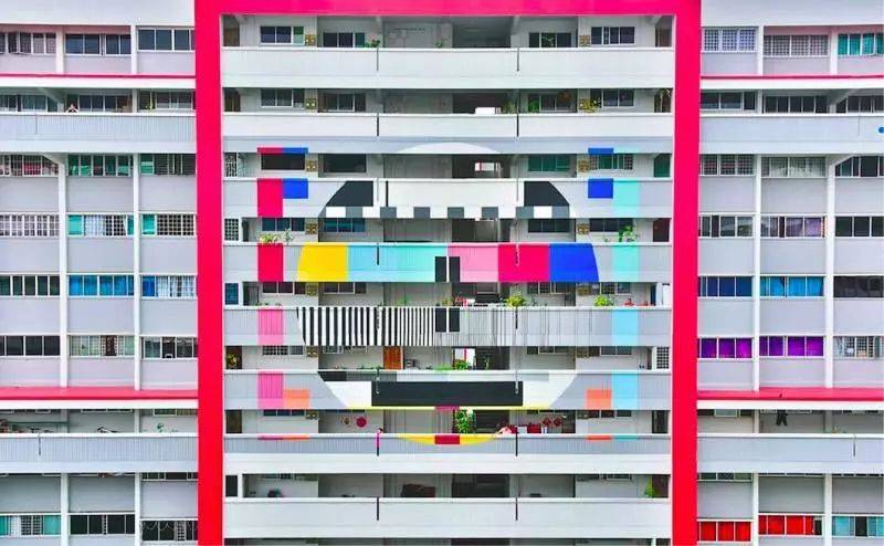模拟电视测试屏幕的设计,占用了六层楼,让人一眼就能辨识出来。这栋组屋也为附近的另外14栋组屋,渲染上了复古氛围。这么别致的设计是由这栋组屋的居民投票决定的,为此该集选区议员还一直在自己的社交账户上夸赞这个复古且极具创意的设计。